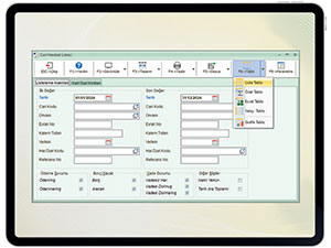- F6-Tablo butonu ile Liste Tablo, Özet Tablo, Excel Tablo, Yatay Tablo ve Grafik Tablo olarak görüntülenebilen Esnek Raporlar