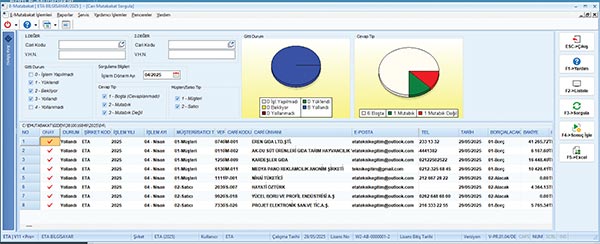 - Hazırlanan mutabakatlar sunucuya tek tuş ile yüklenir, ilgili firmalara otomatik e-posta gönderilir,